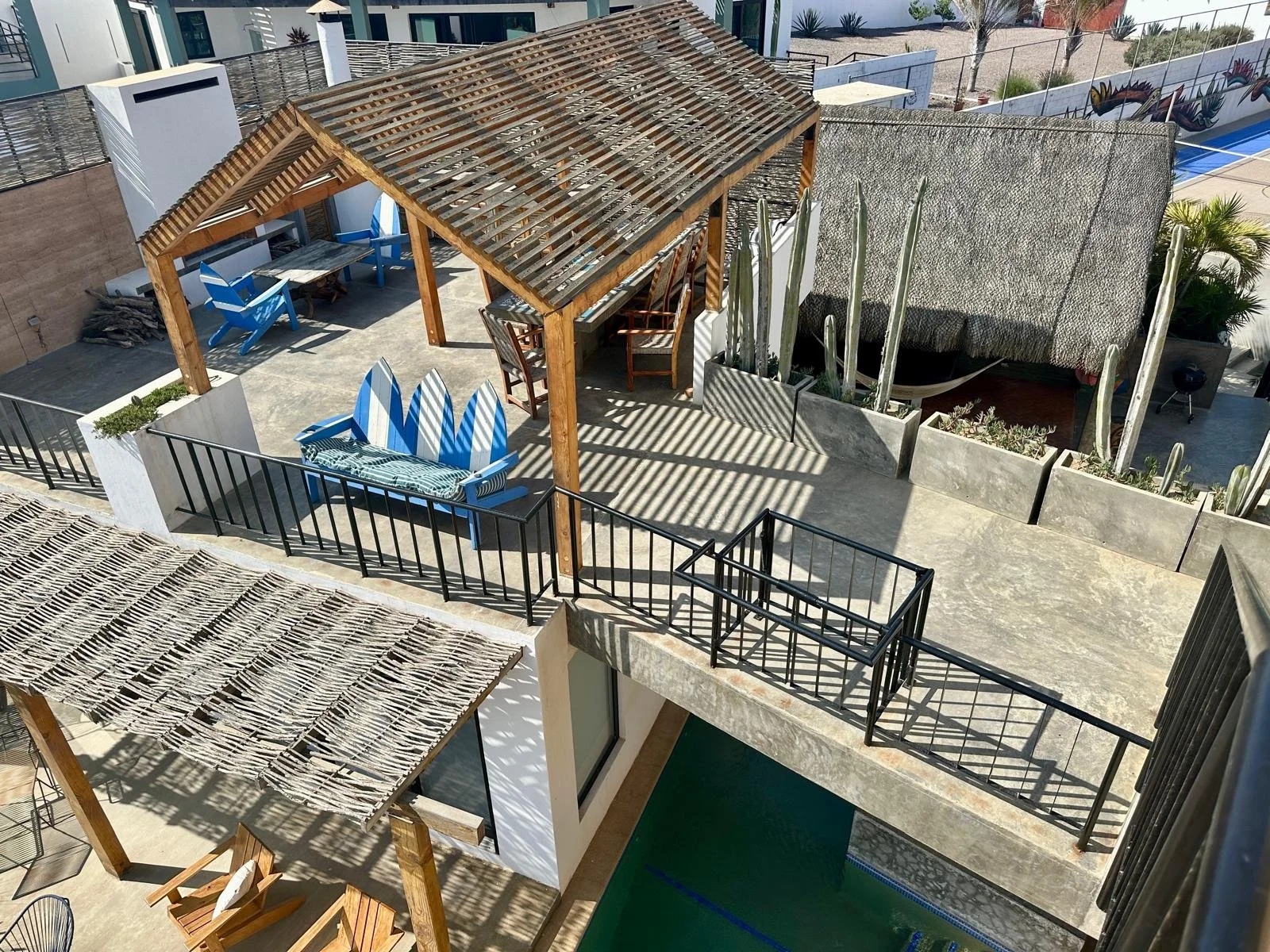 Villa Alma del Mar is a private, design-forward home available for rent near Cerritos Beach. The rental includes the entire ground level of the property: a spacious main suite, a detached casita, and a converted bus for added flexibility. With exclusive access to the pool, spa, tennis court, bocce court, and palapa lounge, the villa offers a soulful Baja experience designed for privacy, comfort, and reconnection.